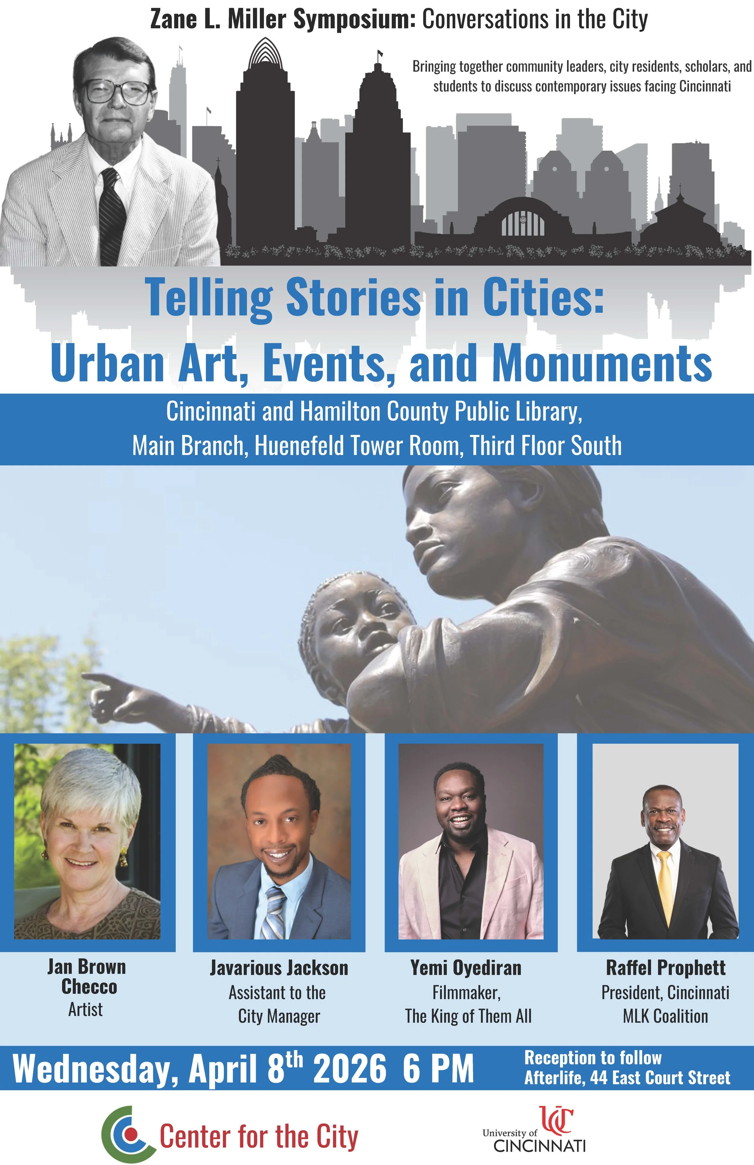 Mr. Raffel Prophett, President, MLK Coalition, will take part as a panelist for UC's Annual Miller Symposium To Explore Cincinnati's Black History. This year's Zane Miller Symposium, "Telling Stories in Cities: Urban Art, Events, and Monuments" will bring together artists, activists, and civic leaders to explore commemoration of African American history in Cincinnati. The event is free and open to the public and will take place on Wednesday, April 8 at 6 pm at the downtown branch of the Public Library of Cincinnati and Hamilton County in the Huenefeld Tower Room on the third floor south.